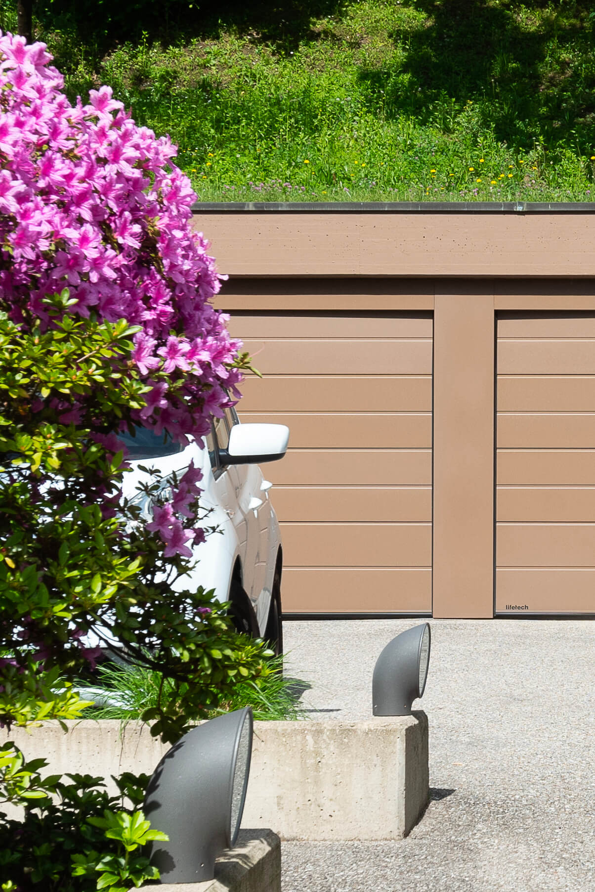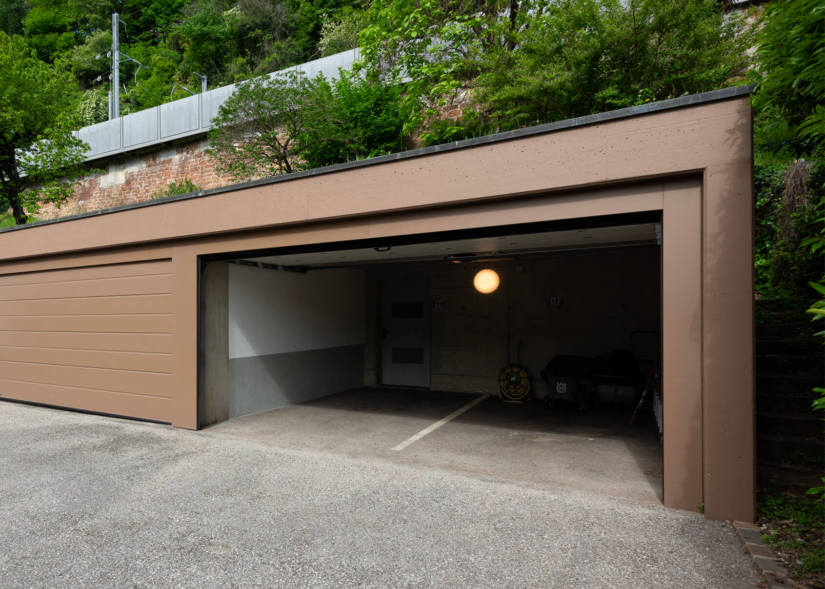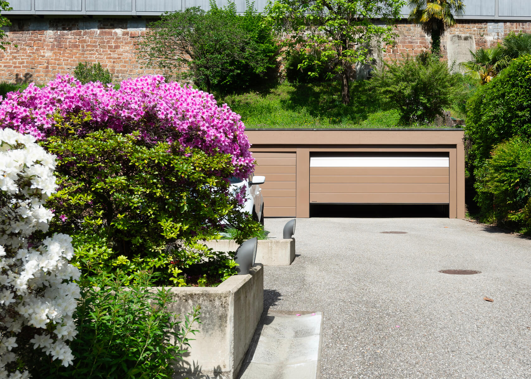 Porte garage sezionali per autorimesse a due posti auto, con struttura portante in acciaio e manto in pannelli coibentati.