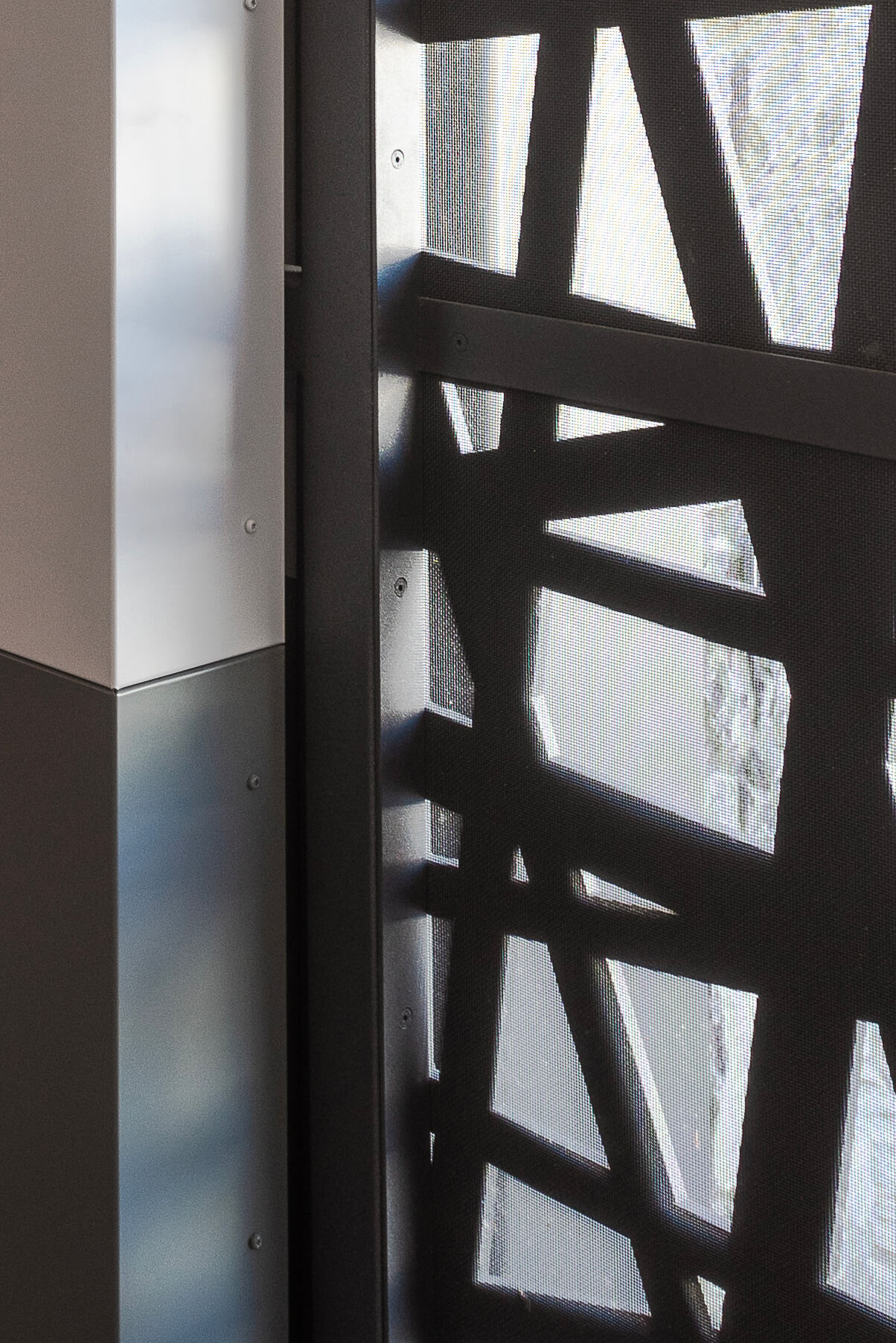 struttura in acciaio con manto in lamiera d’acciaio tagliata al laser e rivestimento interno in micro rete metallica anti-insetti